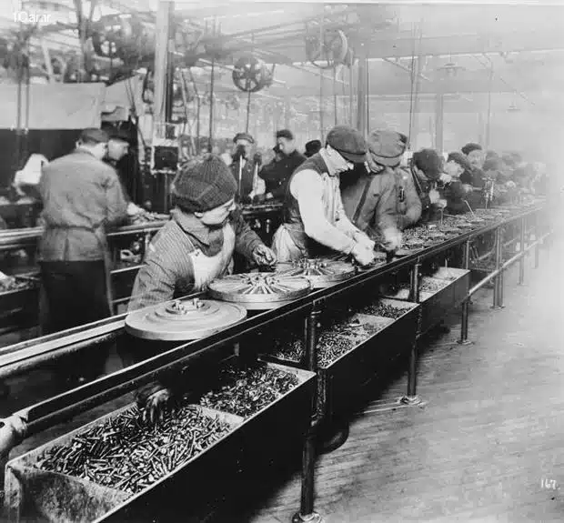 به نظر میآید خطوط تولید در قرن ۱۹ میلادی به وجود آمده باشند، اما در واقع از مدت زمانی قبل تر از آن وجود داشته اند. اصولا، خطوط تولید از بخش کارگری استفاده میکنند. در سیستم قسمت کارگری، به جای اینکه یک شخص همه کارها را از صفر تا صد انجام دهد، هر کسی بخش کوچکی از کار را به عهده میگیرد و قسمت های مختلف را به هم متصل میکنند تا اینکه کار انجام شود. البته، اغلب مردم کارها را در خانه یا مزرعه با هم تقسیم میکنند.